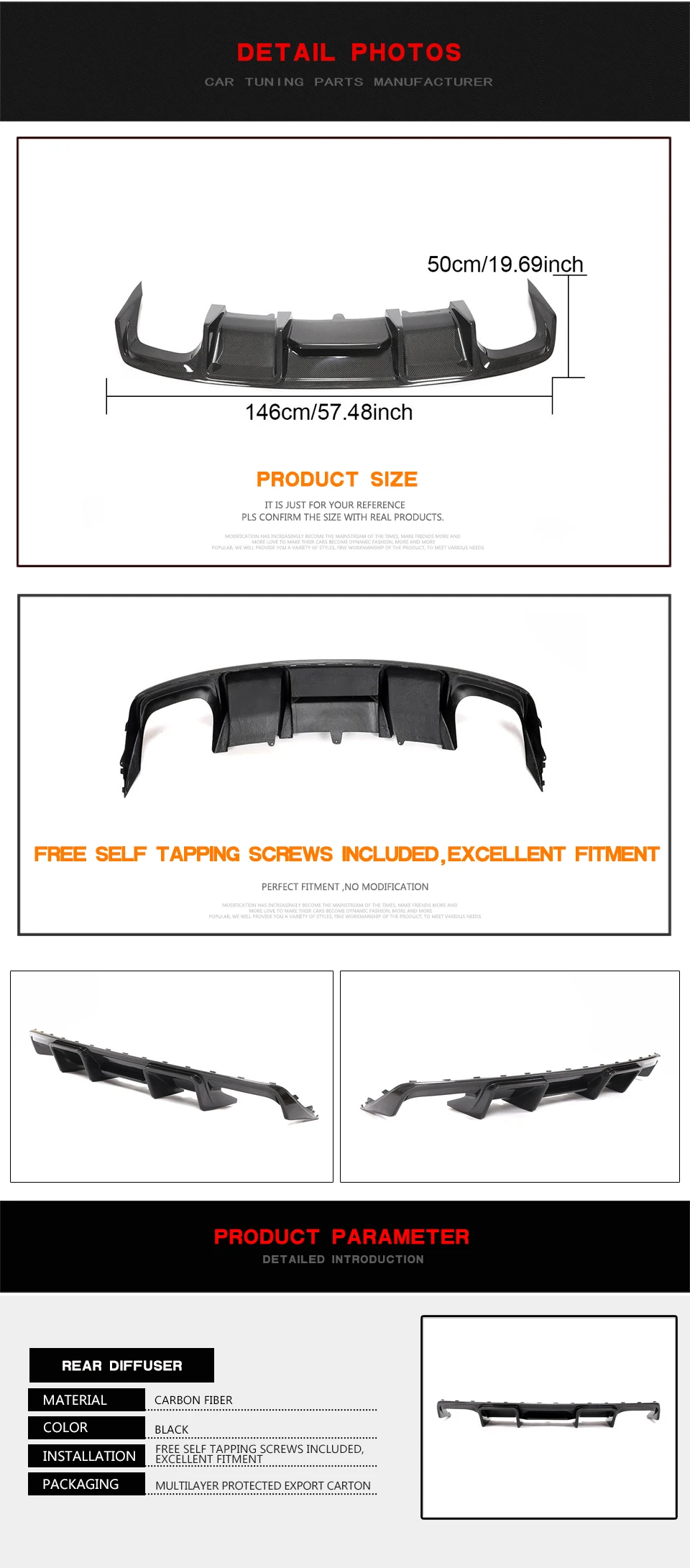 2.Professional Installation: Replacement of the factory bumper diffuser and installed this rear diffuser lip on with screws. Screws included