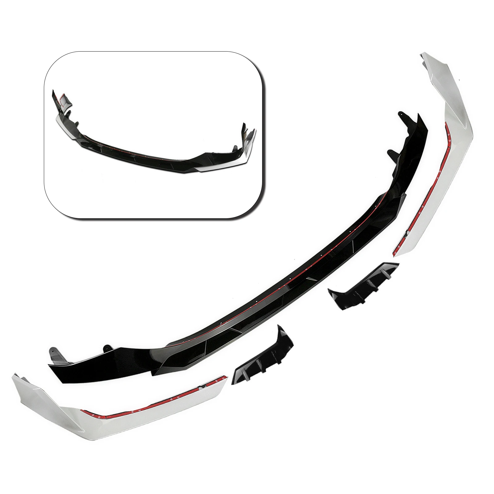 -This is a ONE SINGLE-PIECE Whole Front Lip With 2 Lower Valance Splitter On the Side.