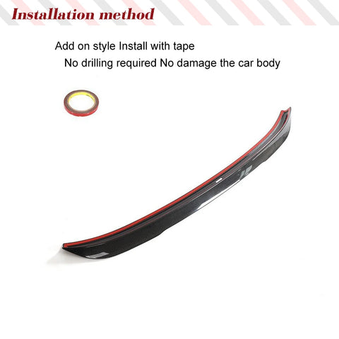 5.Car rear trunk spoiler are designed to factory specifications for easy installation and clean,installed with self-adhesive tape.peel off the tape on the back, then stick the spoiler on the lid of the trunk. It is easy to clean in daily use.
