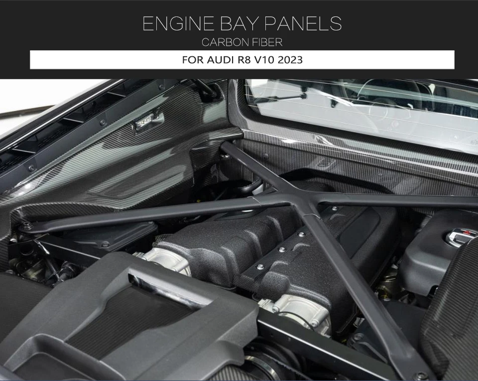 Dry Carbon Car Engine Bay Panel For Audi R8 V10 RWD Coupe 2022 2023 Engine Bay Panel Trim Replacement Parts Body Kits