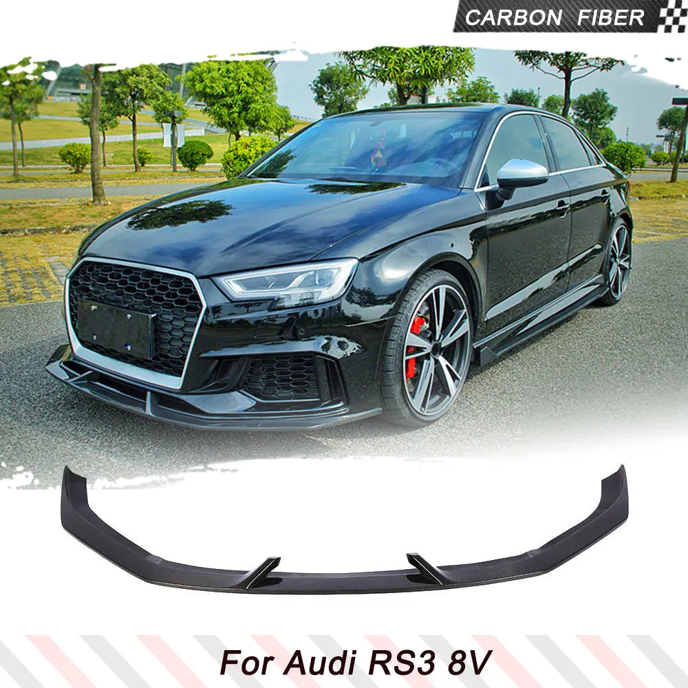 Car Front Bumper Lip Spoiler Splitters Apron Body Kits for Audi RS3 Sedan 4 Door 2017-2019 Carbon Fiber Front Bumper Lip Spoiler