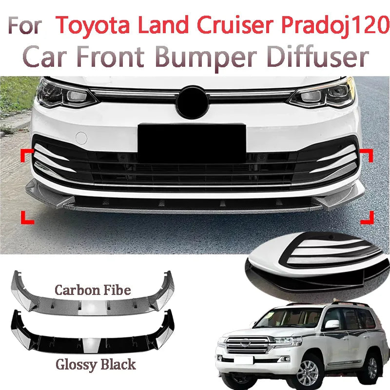 Car Gloss Black Front Bumper Lip Chin Spoiler Splitter Body Kit For Toyota LandCruiser Pradoj120 2002-2009 Car Accessories 1set