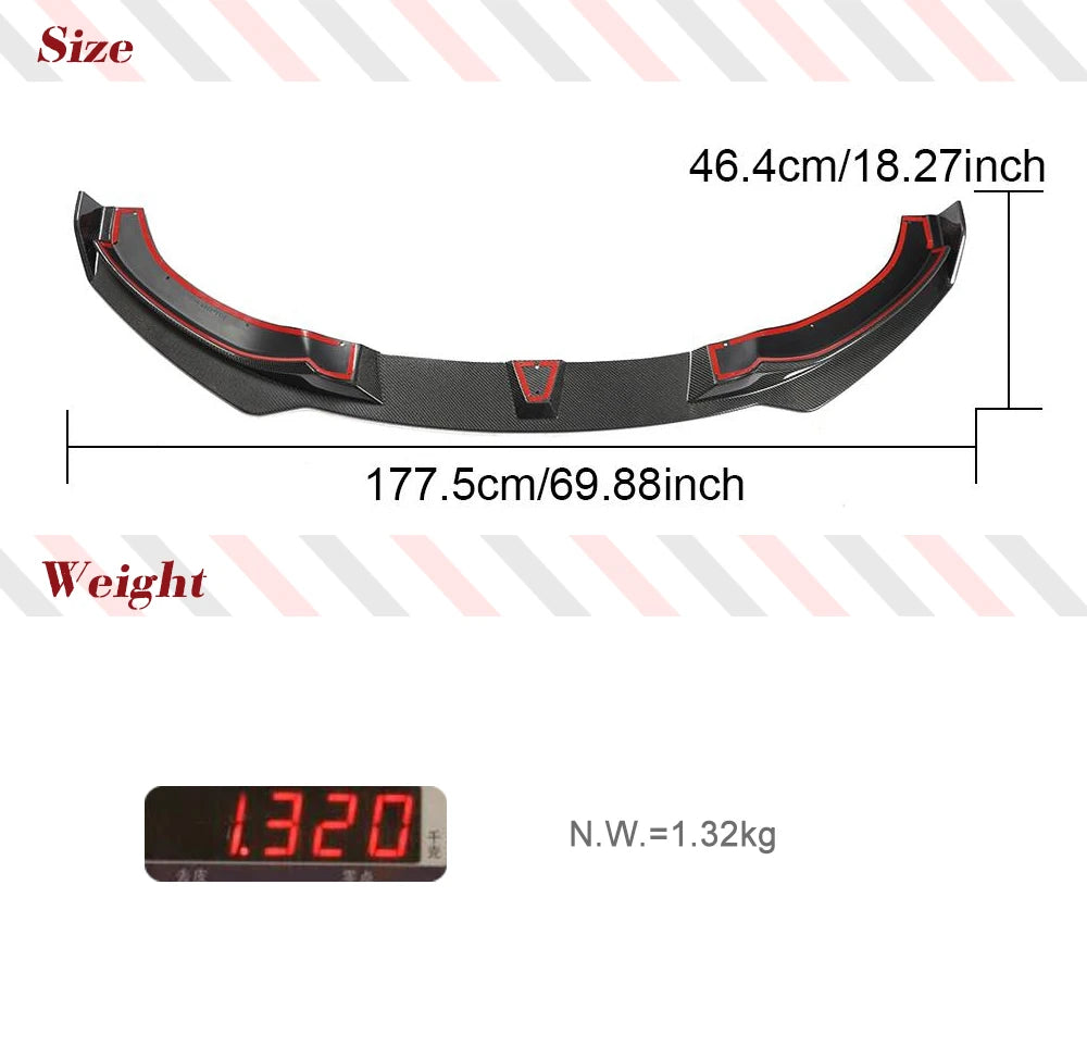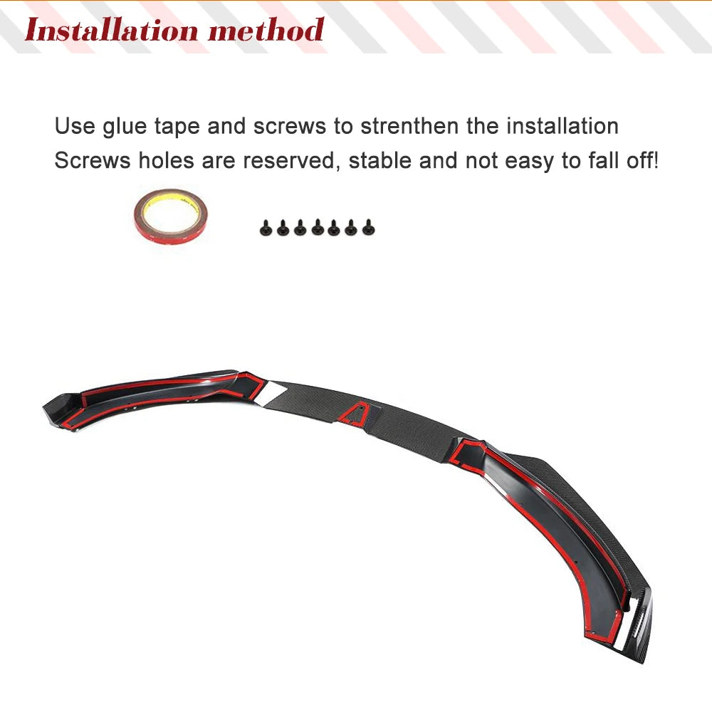 1PC Carbon Fiber Front Bumprer Lip Spoiler, Self-Tapping Screws