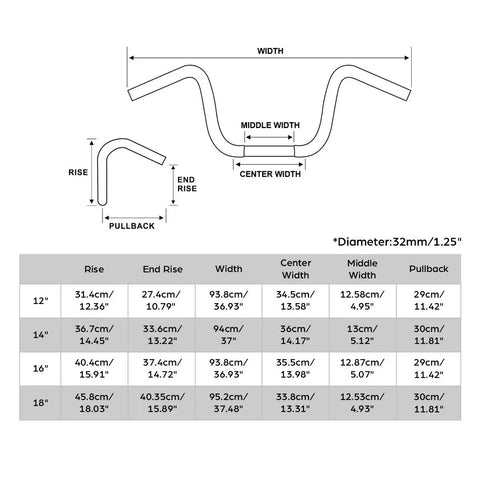 Rise: 12"/14"/16"/18"