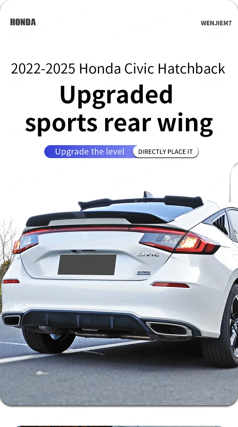 The Civic 2022-2025 ducktail style rear trunk spoiler adds a sleek, sporty look to your vehicle.