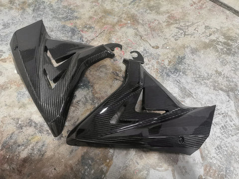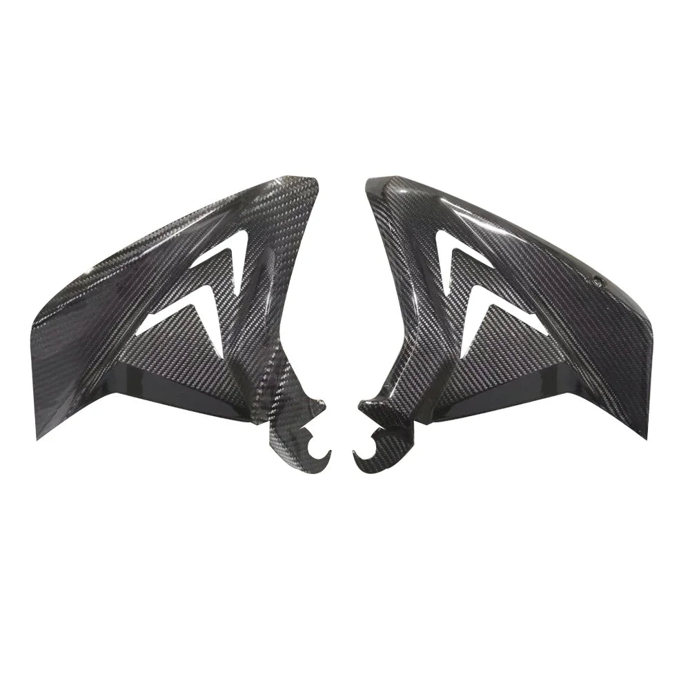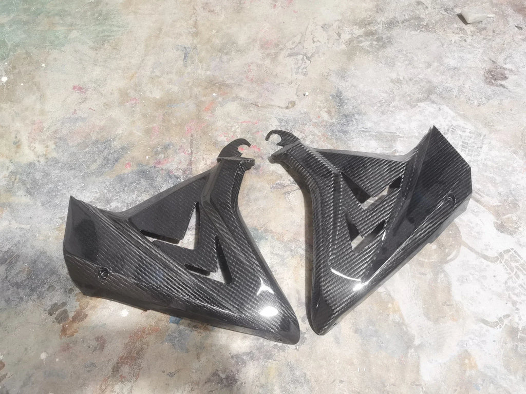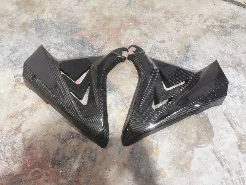 These are handmade aftermarket carbon fiber parts. Some adjustment may be required for proper fitment.