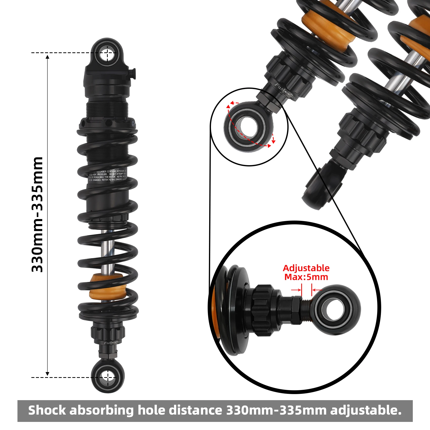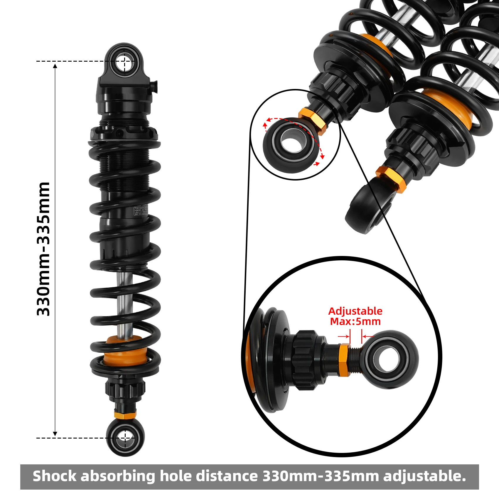 Shock absorbing hole distance: 330mm-335mm adjustable