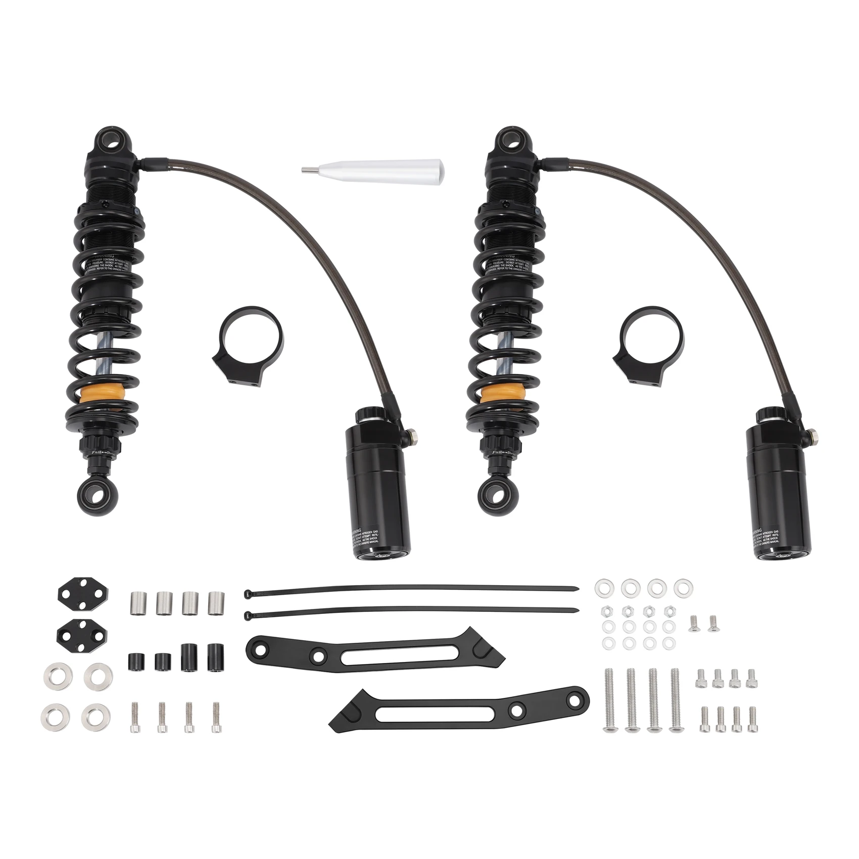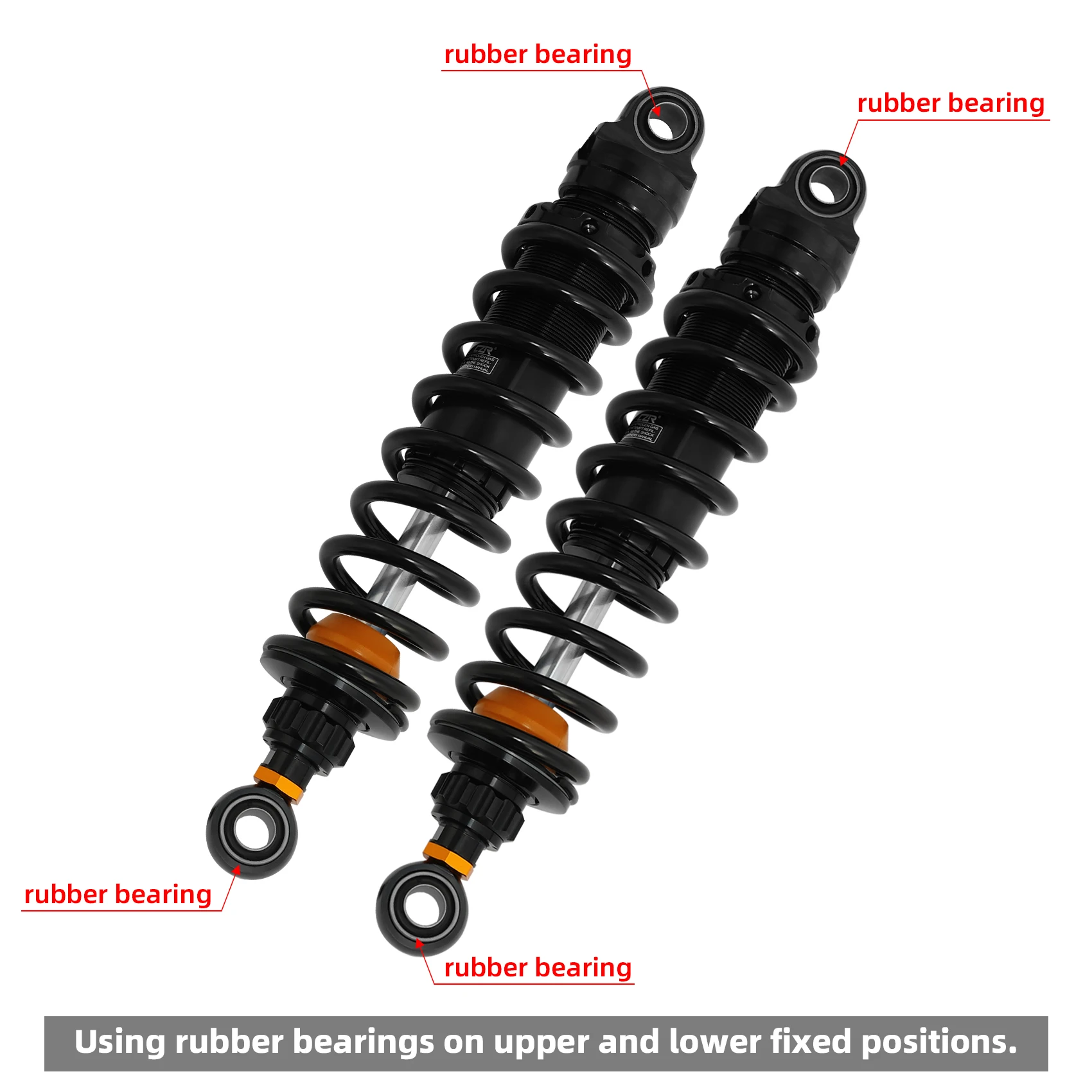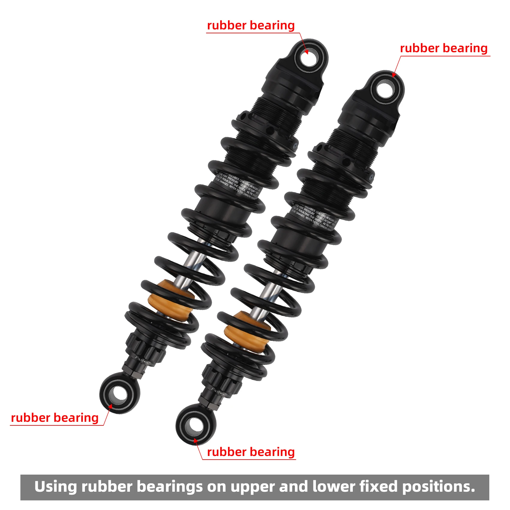 Buffer rubber rings provide improved plush ride quality, control, and resistance to bottoming out.