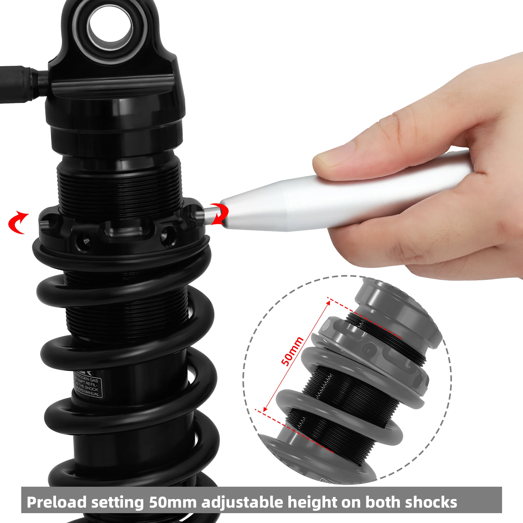 Note 3: Preload setting 50mm adjustable height on both shocks