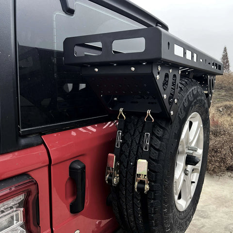 - Enhanced Storage:** Our rear door spare tire storage rack is designed to maximize storage space in your vehicle, keeping your