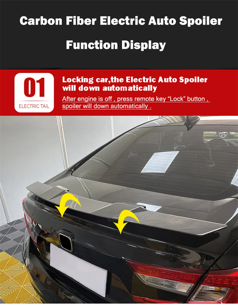 1: The spoiler wing automatically lifts up ( when you press the remote key to unlock, the spoiler will lift up automatically )