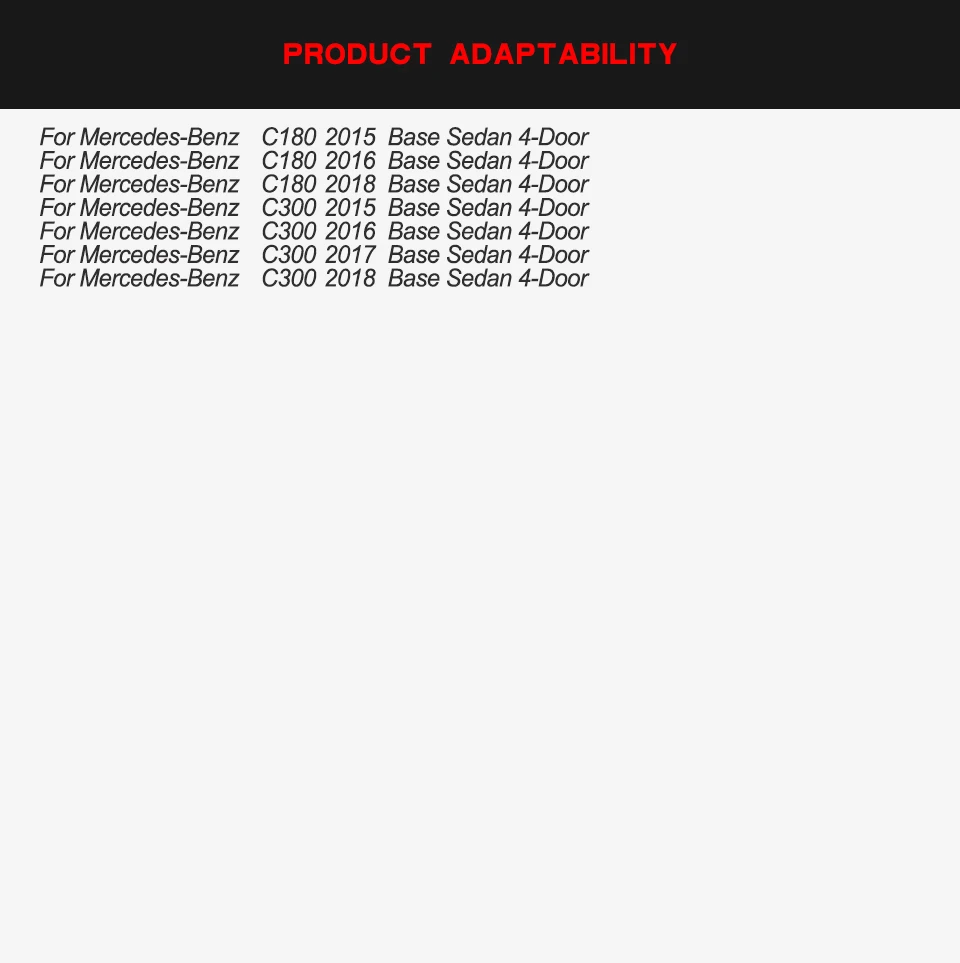 1. Fitment: Fits for Mercedes-Benz W205 Base Sedan C180 C200 2015 - 2018