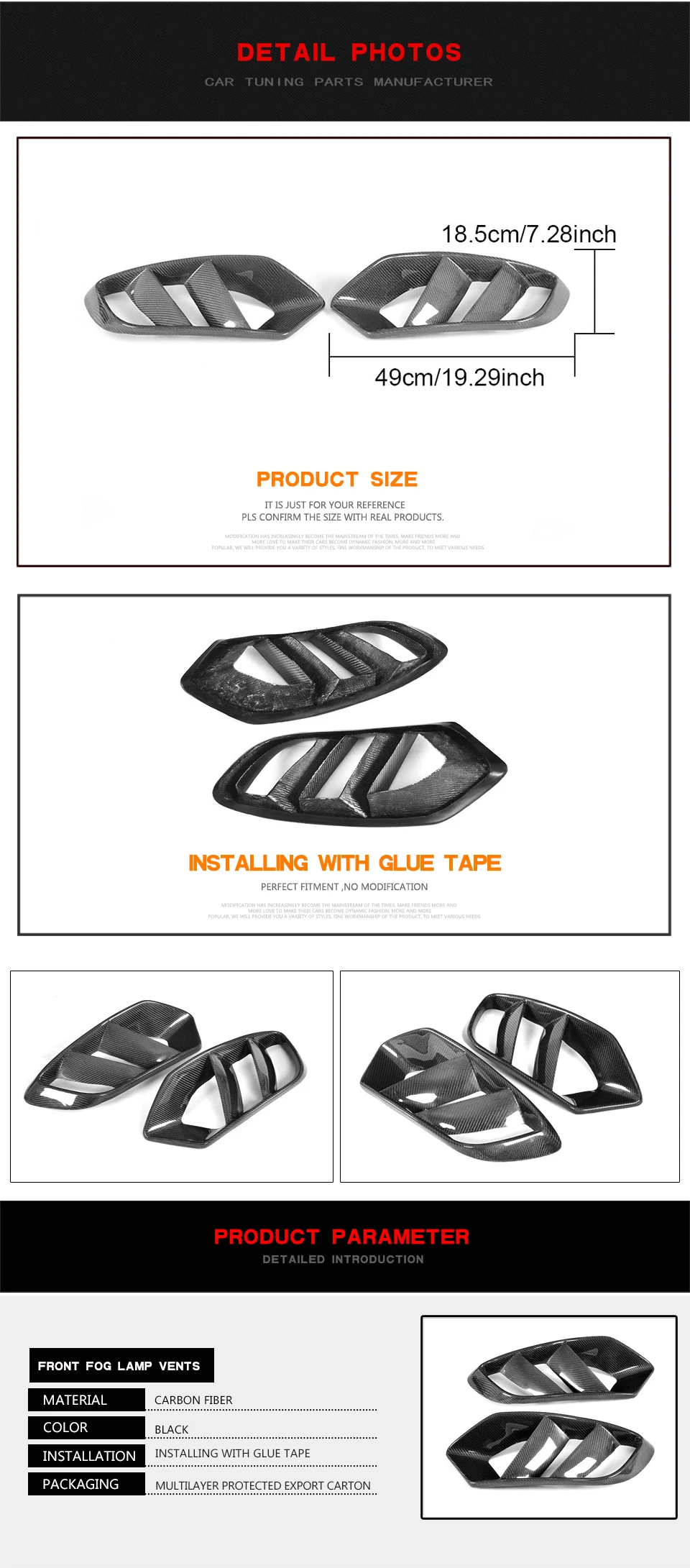3. Installation: Free glue tape included in the package for easy installation, perfect fitment, no modification