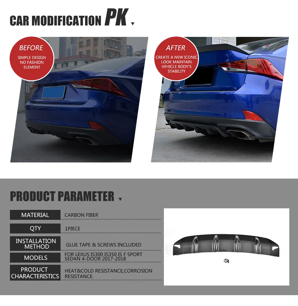 Carbon Fiber Car Rear Diffuser Lip Bumper Protector for LEXUS IS300 IS350 IS F Sport Sedan 4 Door 2017-2020