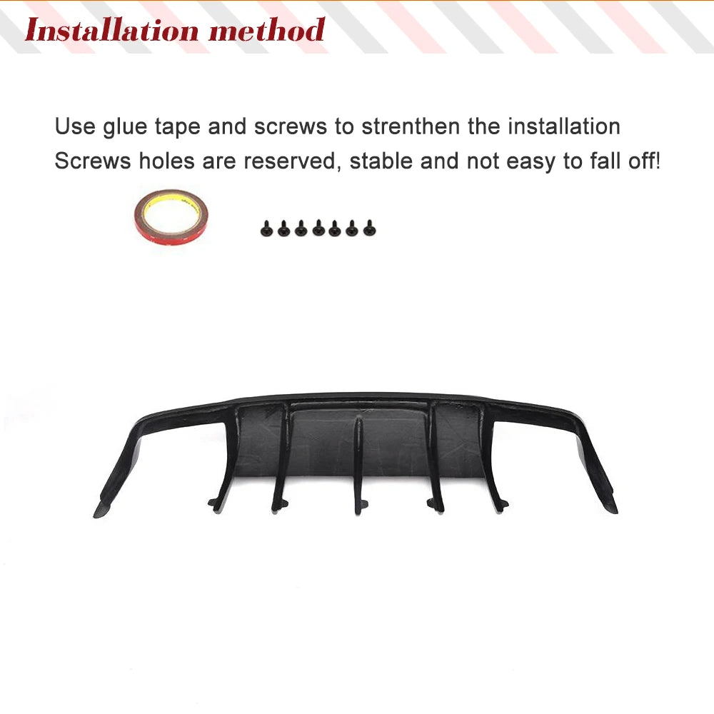 4.Car rear bumper diffuser are designed to factory specifications for easy installation and clean,Replacement of the factory bumper diffuser and installed this rear diffuser lip on with self-taping screws included