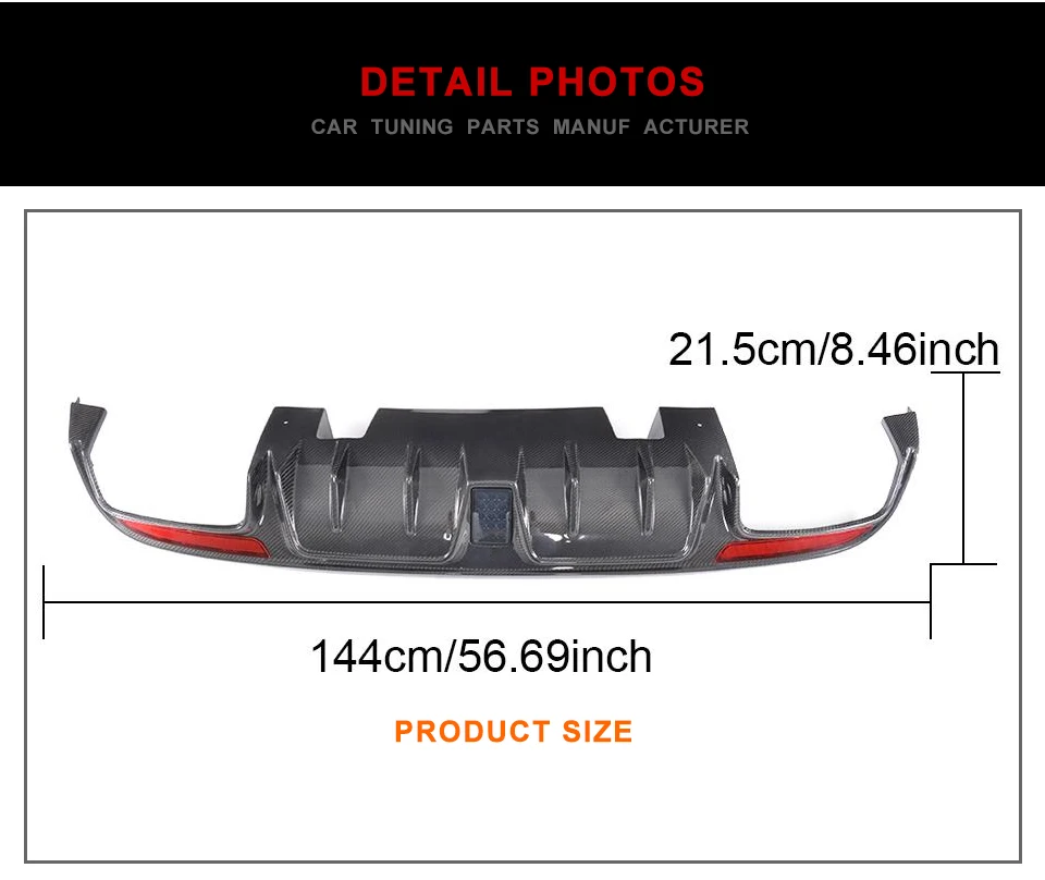 5.This rear bumper diffuser is designed to factory specifications for easy installation and clean,installed with self-tapping screws included in the package.