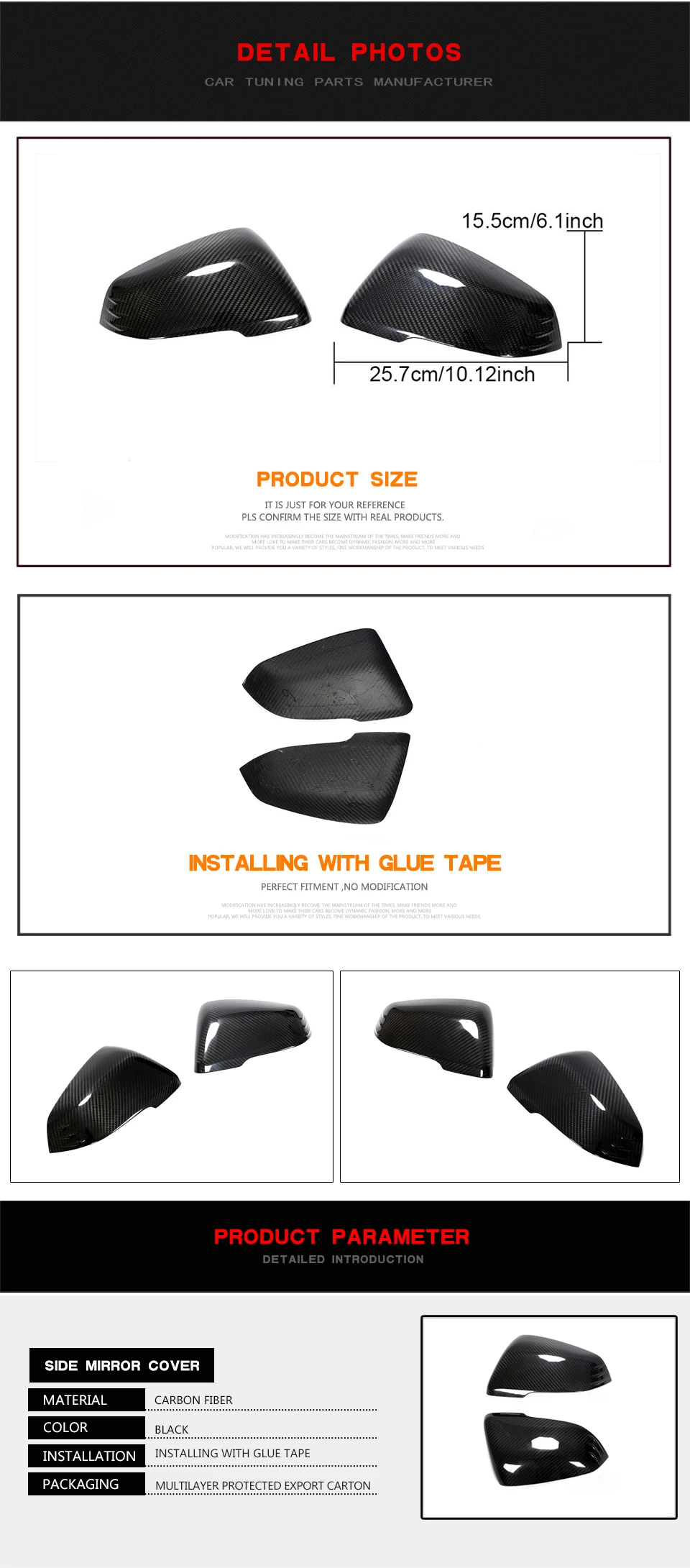 4.Car mirror covers are designed to factory specifications for easy installation and clean