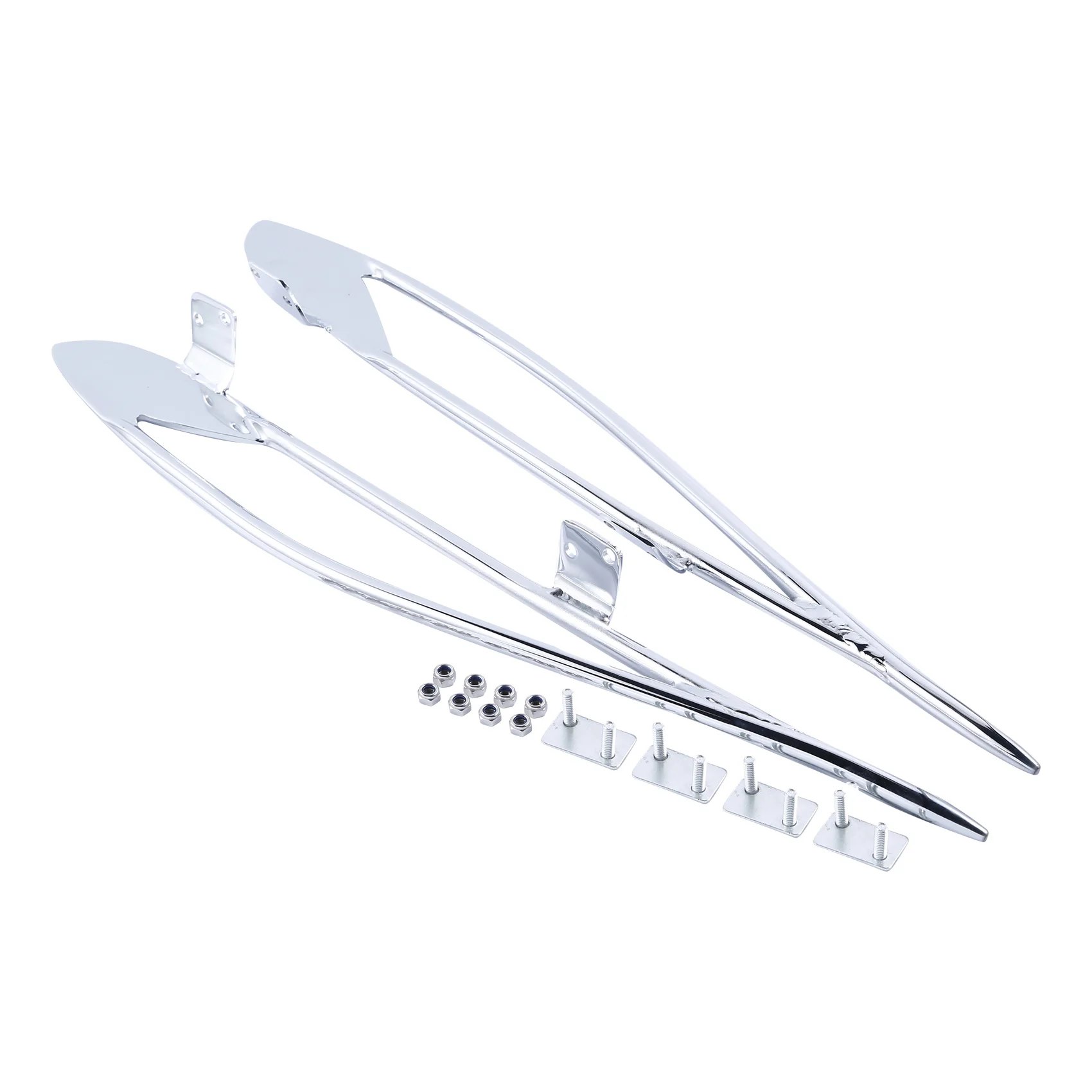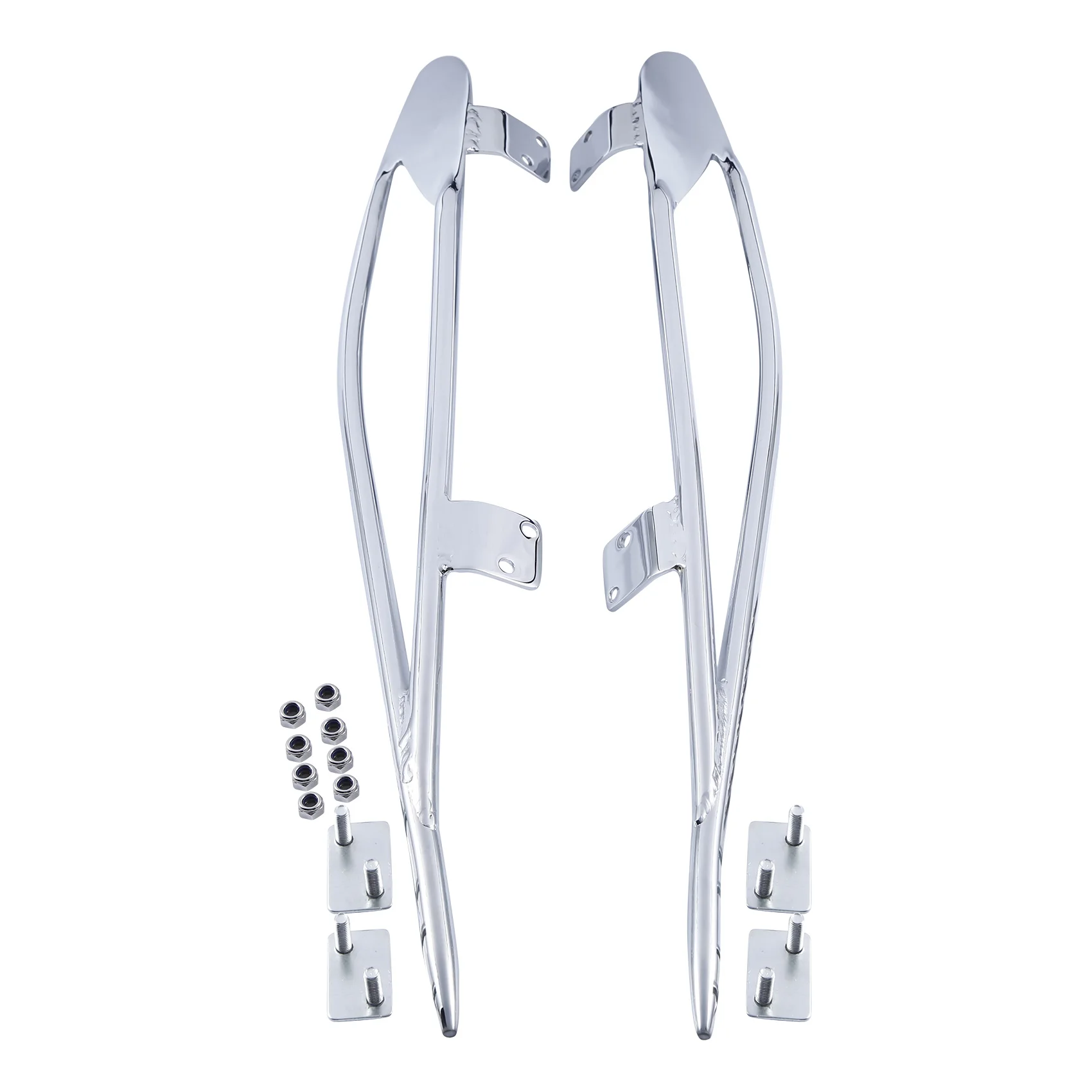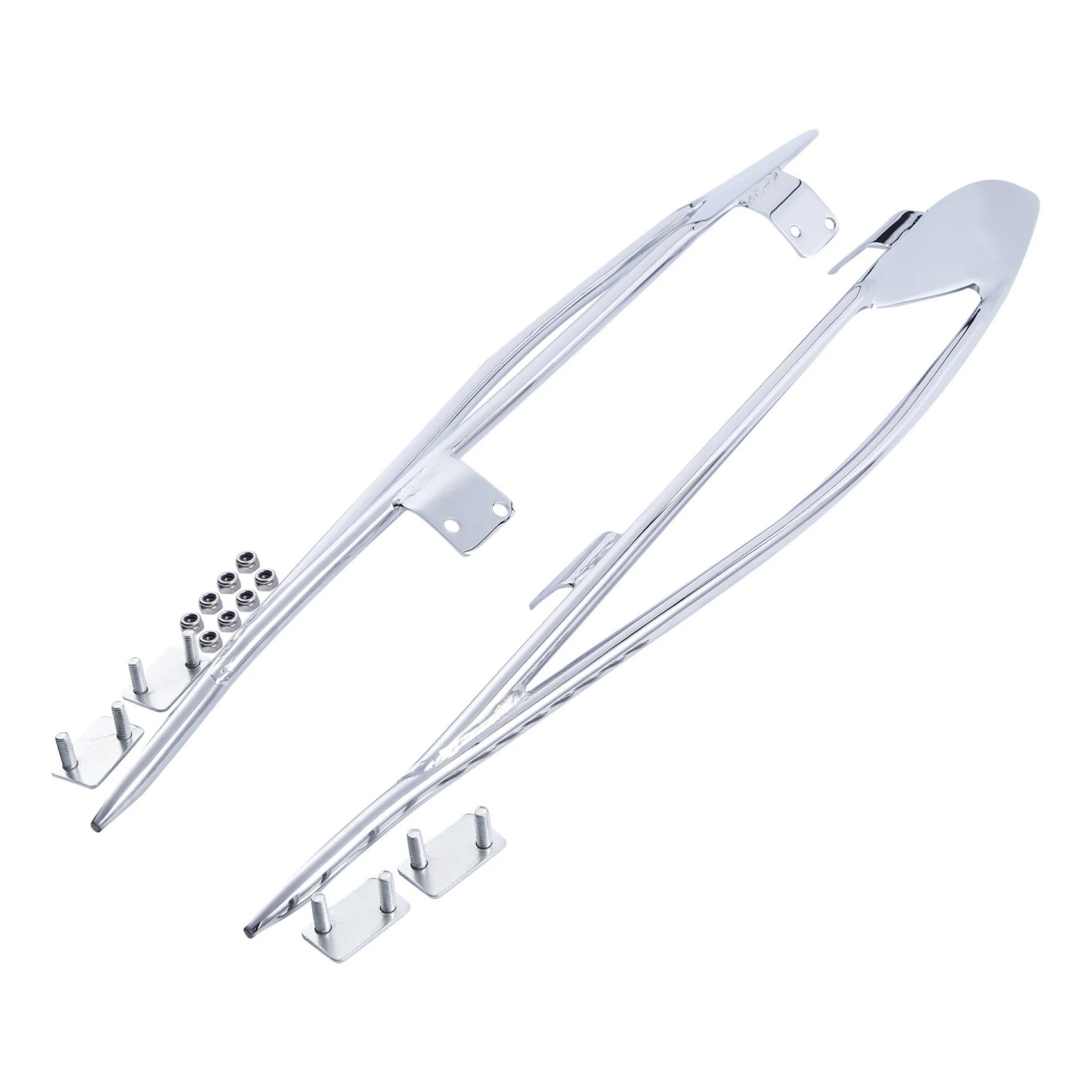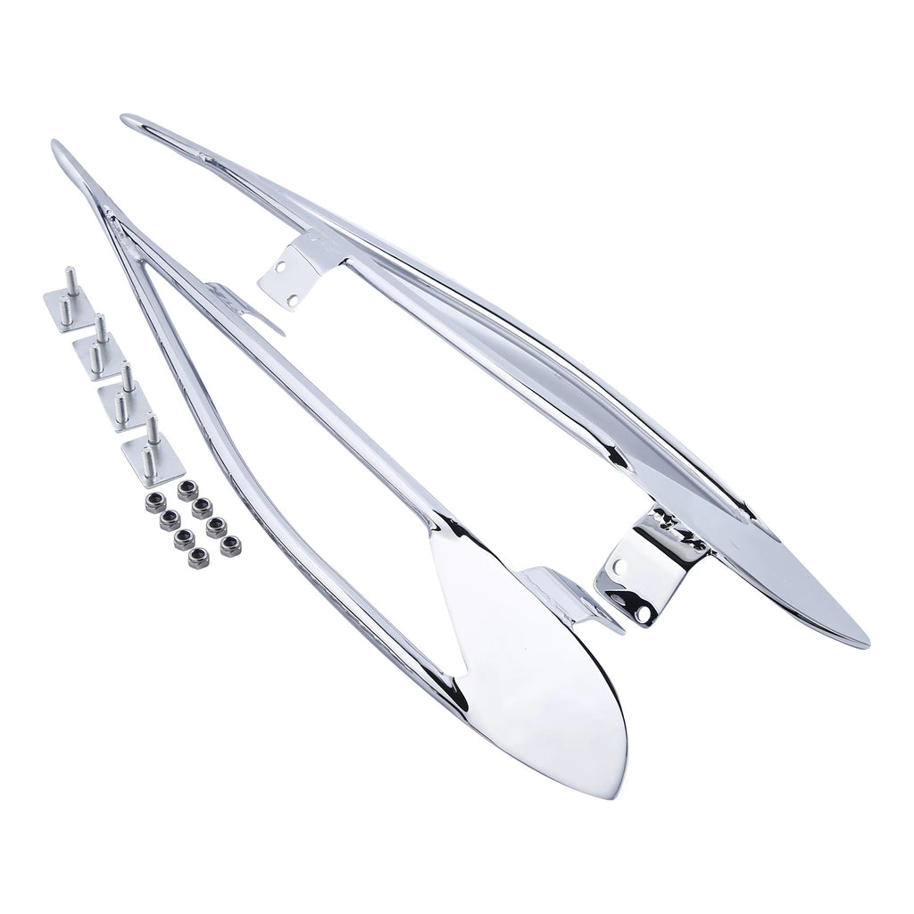 These strong, chrome-plated rails bolt on easily and provide protection along the outside edges of hard saddlebags.