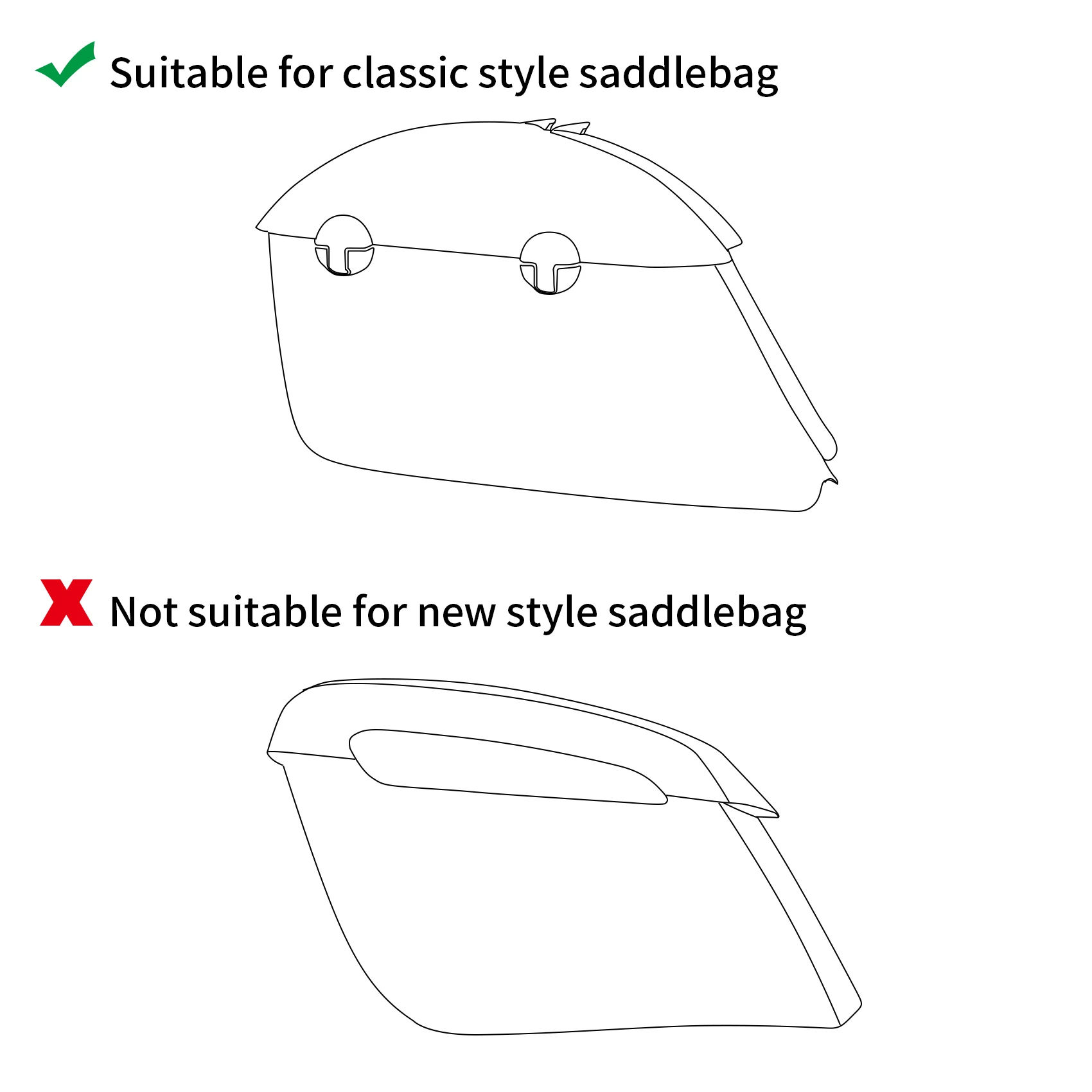 2. This item only fits for classic style saddlebags. Not suitable for new style saddlebags. Please check the pictures.
