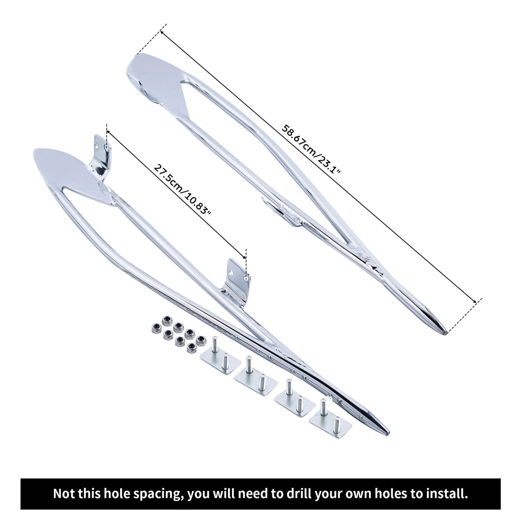 1. Please check our holes spacing to make sure if this item can fit your saddlebags or not. Please check the size picture!!!!! This saddlebag has two hole spacings, and our product only fits one of them. If the buyer's saddlebag hole spacing is not 27.5cm (10.83"), the buyer needs to drill holes on the saddlebag to install the product.