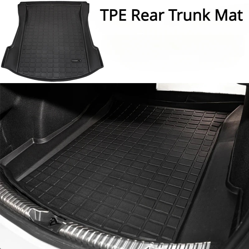 For Tesla Model 3 Y 2023 Rear Trunk Mat TPE Storage Box Pads Cargo Liner Pad Waterproof Wearable Protective Mat Car Accessories