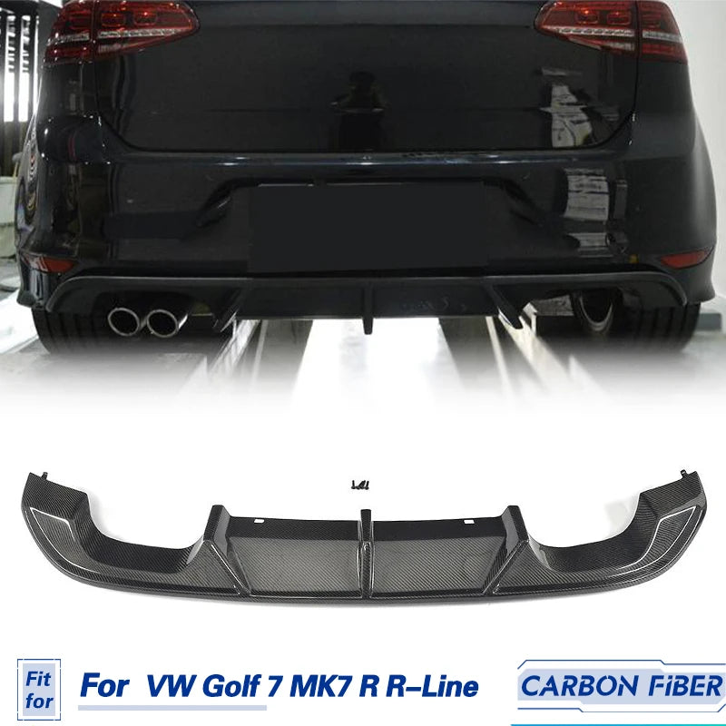 Rear Bumper Diffuser Lip Spoiler Carbon Fiber For Volkswagen VW Golf 7 MK7 R R-Line Hatchback 14-17 Rear Bumper Diffuser Black