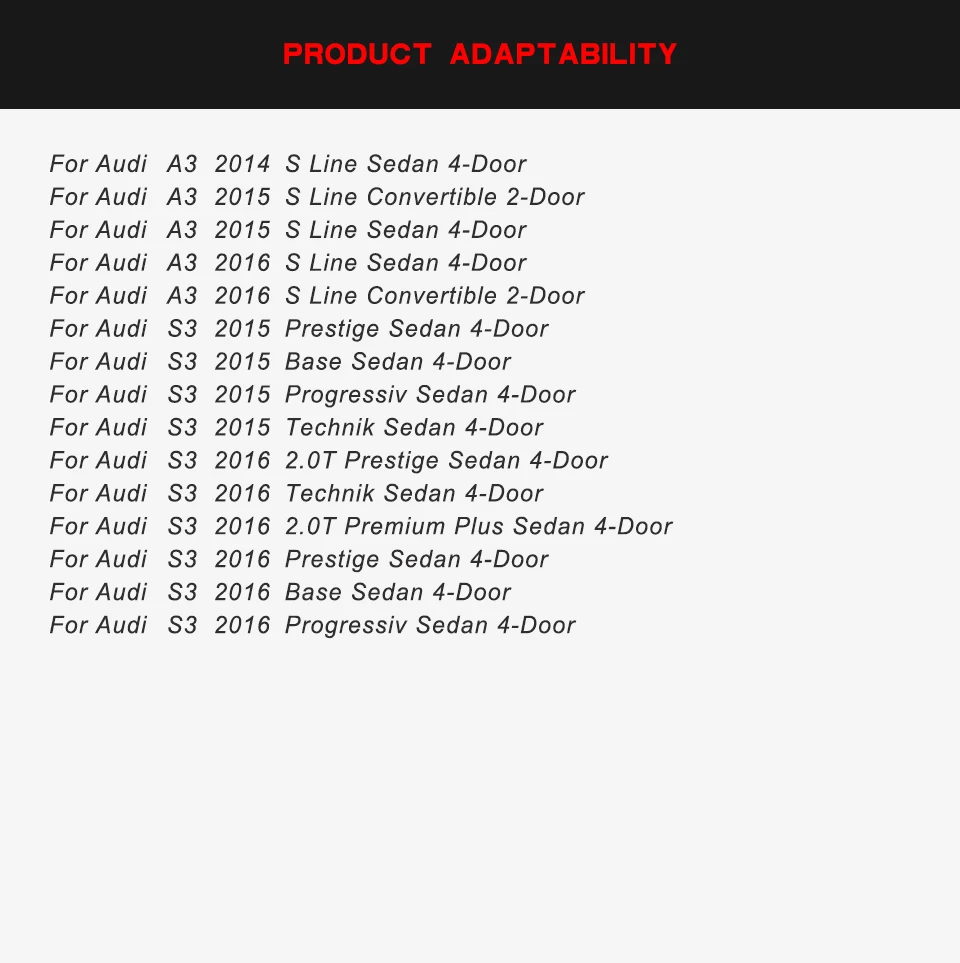 1.Fitment: Fit For Audi A3 S Line S3 8Y RS3 Sedan 4-Door 2013-2023