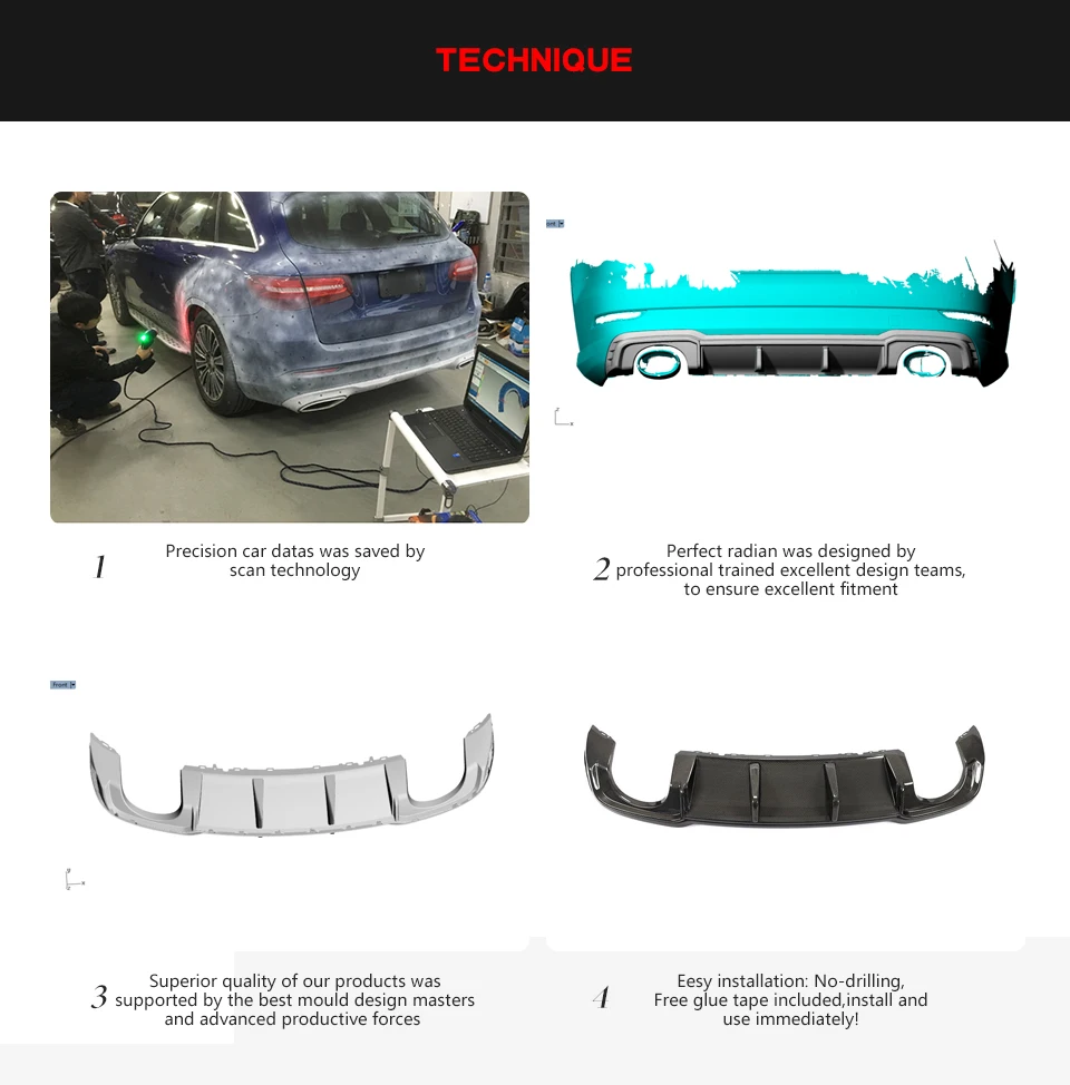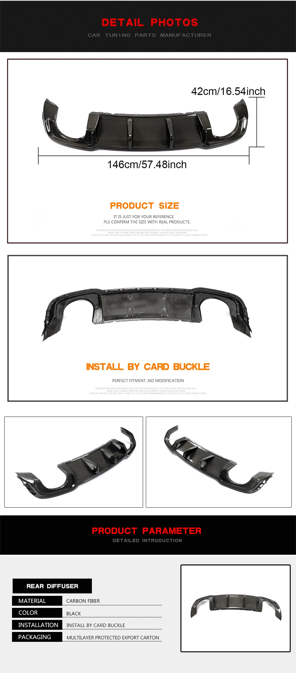 5.This rear bumper diffuser is designed to factory specifications for easy installation and clean,installed with self-tapping screws included in the package.